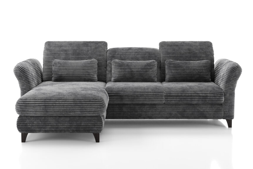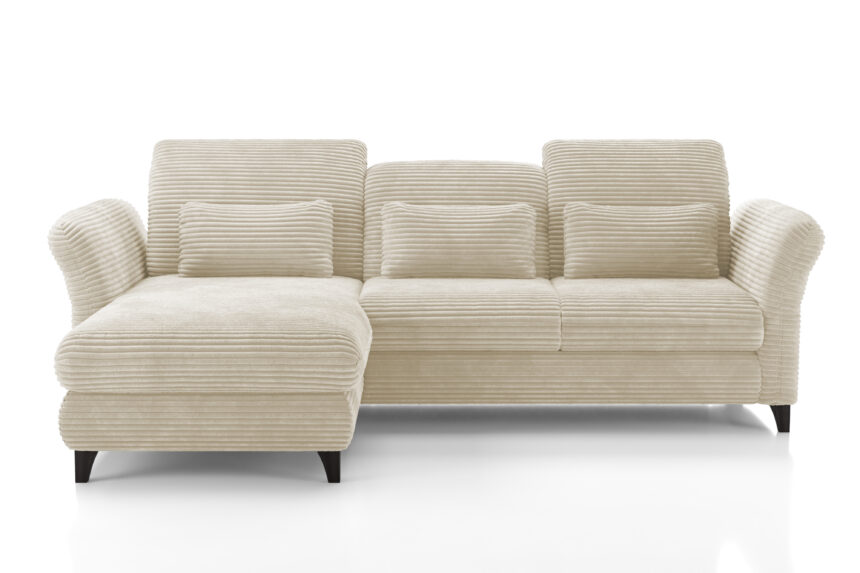 Die Linien und Formen des Sofas sollten keine klaren geometrischen Linien haben, sondern Weichheit und maximale Funktionalität in allem. Zum Beispiel sieht ein Ecksofa "Karolina" aus unserer Kollektion perfekt in Velours aus. Dieses Modell passt auch gut zu einem Stoff, der als "Bouclé" bezeichnet wird, mit komplexen Verschlingungen von Fäden in verschiedenen Farbtönen. Materialien, die Wildleder imitieren, sind sehr strapazierfähig und ergänzen diesen Stil perfekt. Bei einem warmen Minimalismus sollten die Sofabeine bodennah sein, idealerweise mit hohen Beinen als Stützen. Denken Sie daran, dass dieser Stil freien Raum mag und dass Polstermöbel ihn nicht überladen sollten.