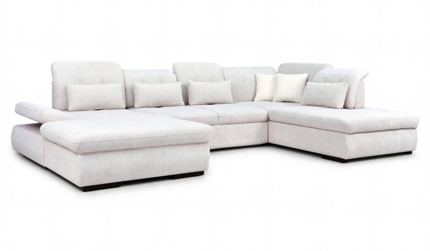 Die Linien und Formen des Sofas sollten keine klaren geometrischen Linien haben, sondern Weichheit und maximale Funktionalität darstellen. Zum Beispiel präsentiert sich das Ecksofa „Karolina“ aus unserer Kollektion perfekt in Velours. Dieses Modell sieht auch hervorragend mit einem Stoff aus, der als „Bouclé“ bezeichnet wird. Er bietet komplexe Verschlingungen von Fäden in verschiedenen Farbtönen. Kunstwildleder ist sehr strapazierfähig und ergänzt